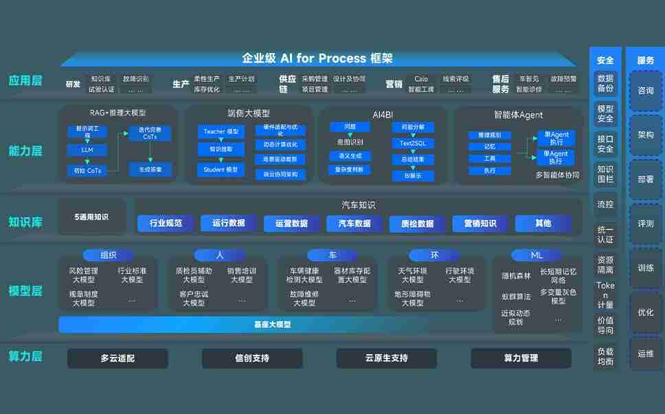 尊龙集团问学智车解决方案是一套基于AI技术的汽车行业智能化系统,,覆盖从底层算力到顶层AI应用的全栈方案。。。方案由算力层、、、、模型层和应用层组成:算力层,,方案支持多种一体机配置,,,具备云端灵活部署、、、多云适配以及动态优化计算资源的能力;模型层,,,,尊龙集团问学平台版提供了企业级AI应用一站式构建与管理平台,,支持基于后训练强化技术的汽车企业专属模型的训练、、评测和运营;应用层,,尊龙集团问学DeepSeek版提供包括超级员工、、、、智能招采、、、、智能营销、、、智能客服、、、AI for BI等一系列解决方案,,可助力汽车行业实现数字化转型,,让管理更智能、、响应更敏捷。。。